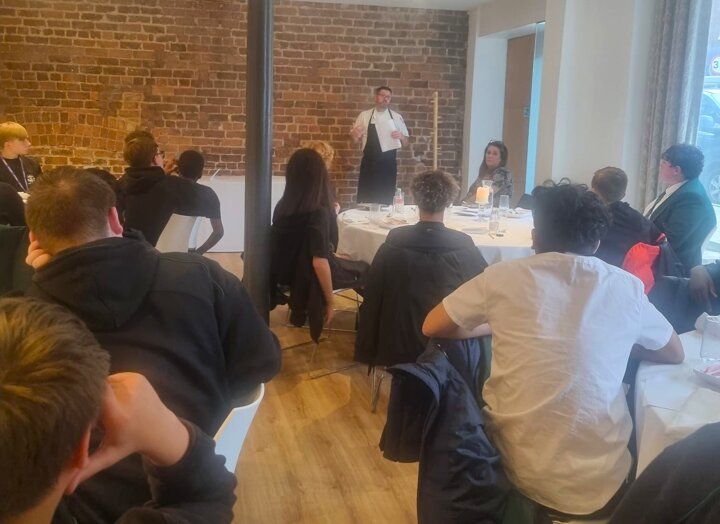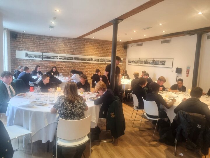Thirty students recently had the opportunity to visit The London Carriage works restaurant @ The Hope Street Hotel for a unique fine dining experience. They enjoyed a delicious two-course meal featuring dishes such as gnocchi, cod supreme, and poached pears.